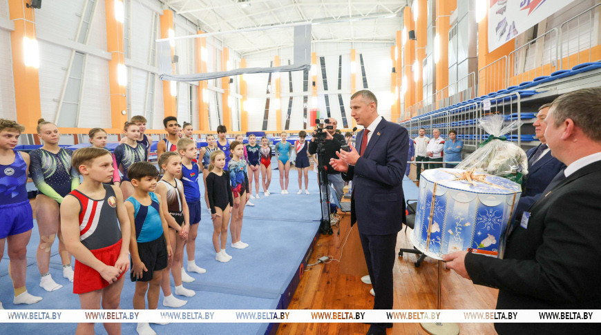 Выхаванцам Віцебскай спецыялізаванай дзіцяча-юнацкай школы алімпійскага рэзерву нумар 1, дзе трэніруюцца пачынаючыя і ўжо тытулаваныя зоркі батутнага спорту з усёй рэспублікі, кіраўнік Адміністрацыі Прэзідэнта Дзмітрый Крутой уручыў салодкія падарункі ад беларускага лідара, перадае карэспандэнт БЕЛТА.