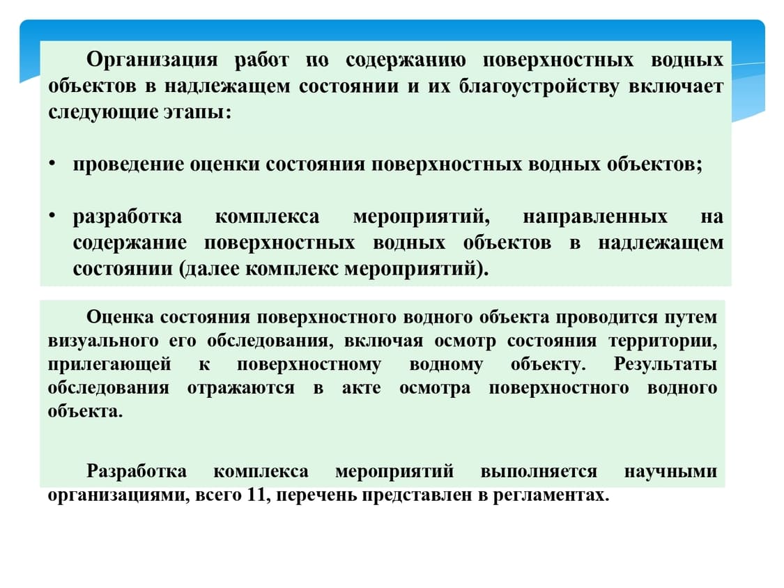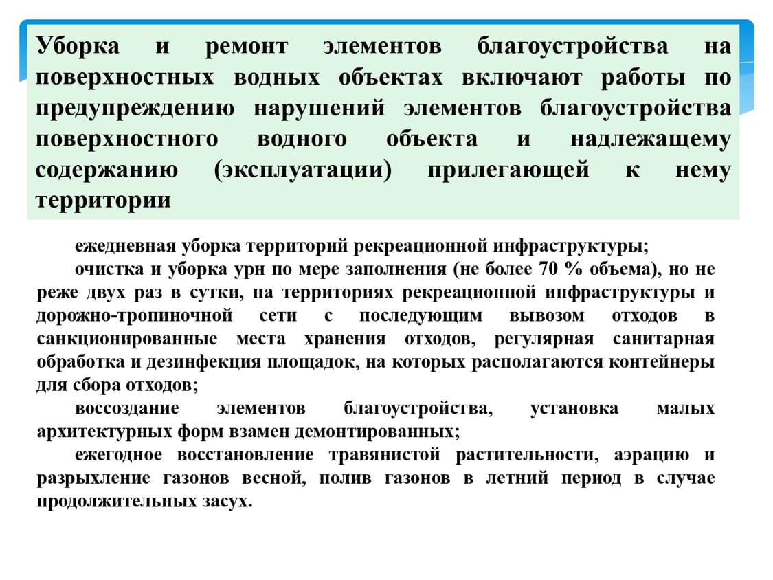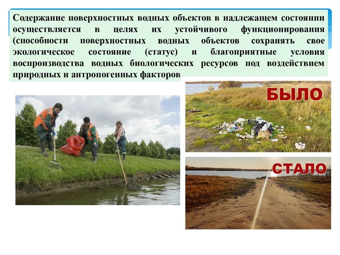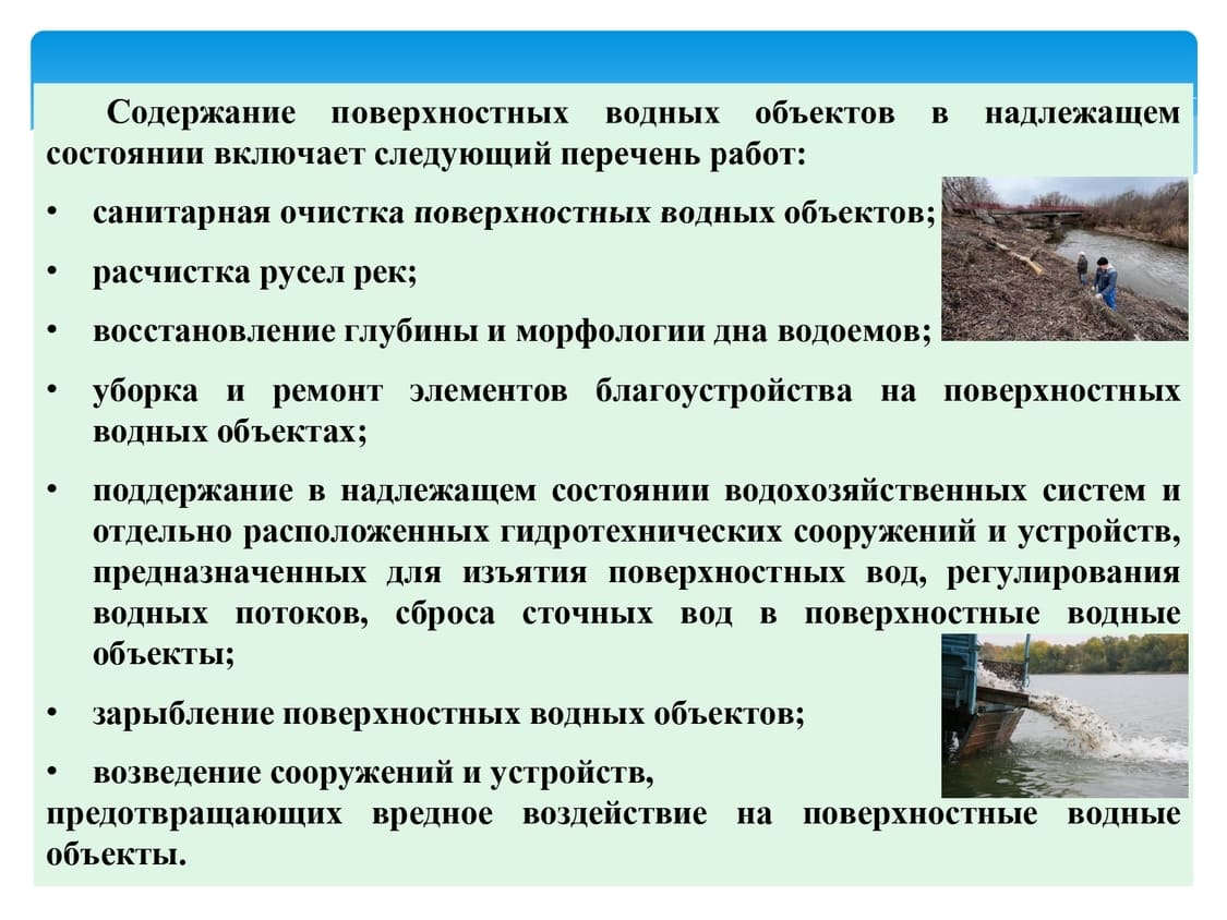 Требования к выполнению работ по содержанию поверхностных водных объектов в надлежащем состоянии и их благоустройству