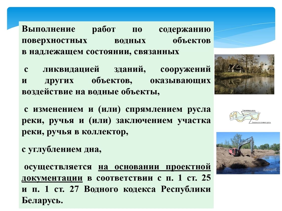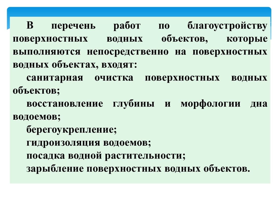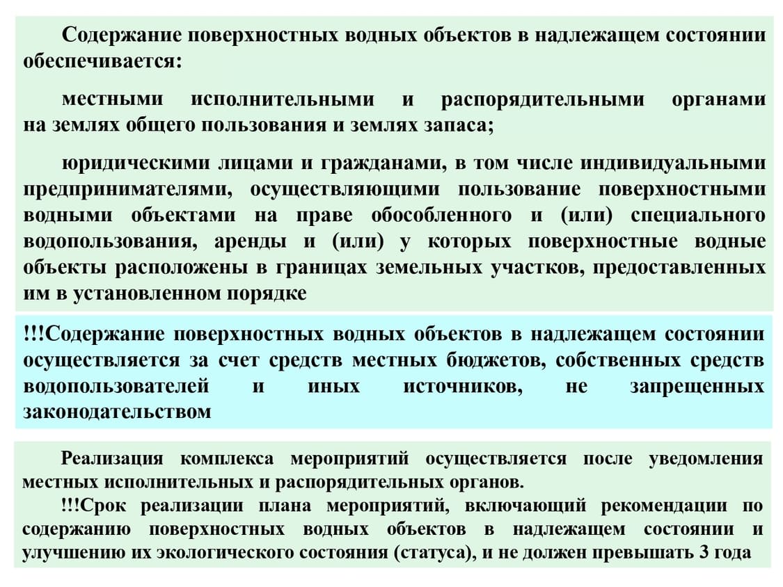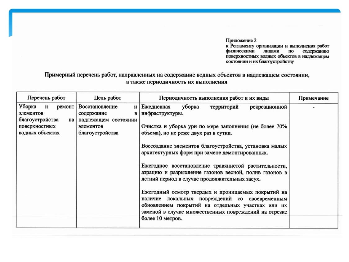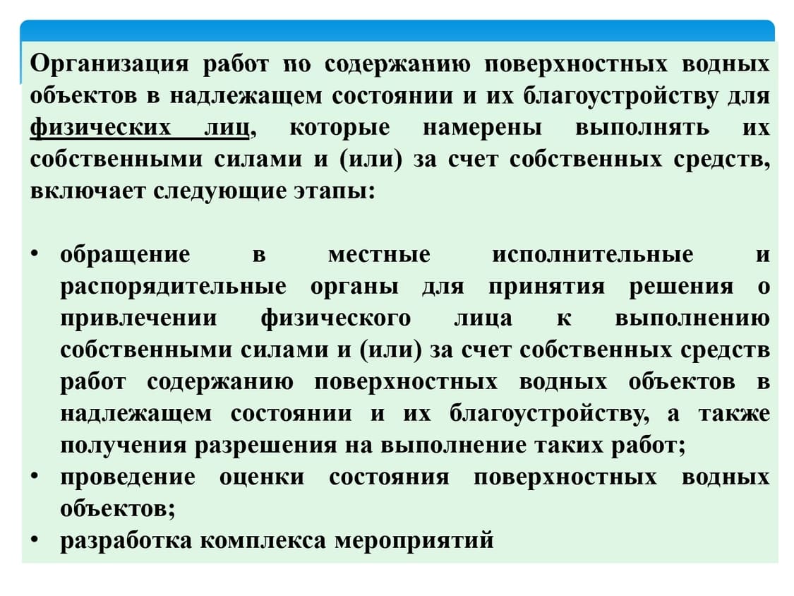 Требования к выполнению работ по содержанию поверхностных водных объектов в надлежащем состоянии и их благоустройству