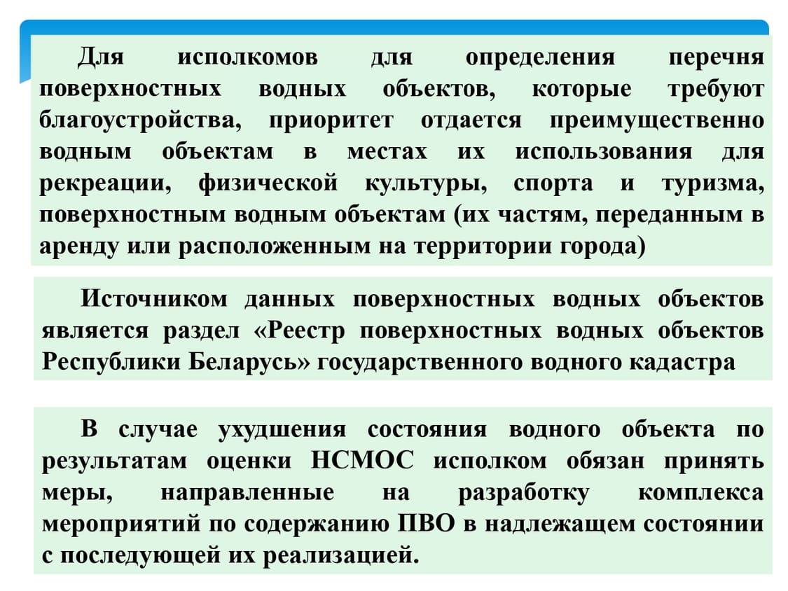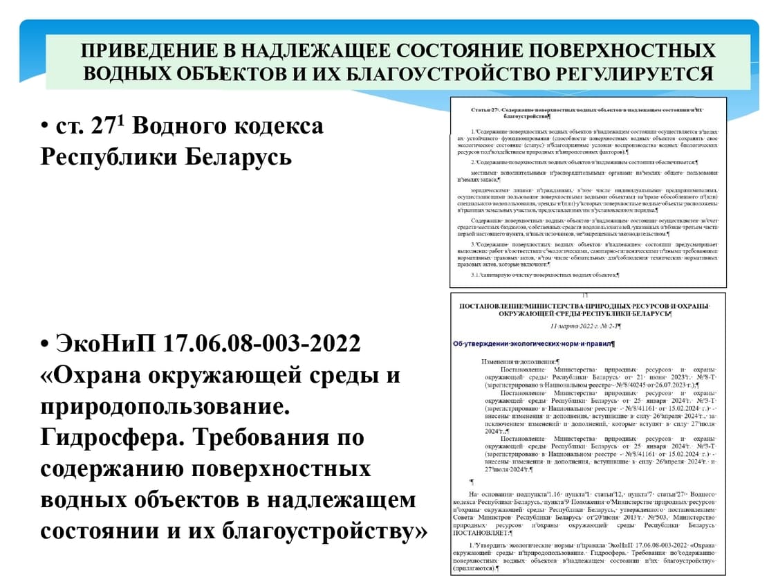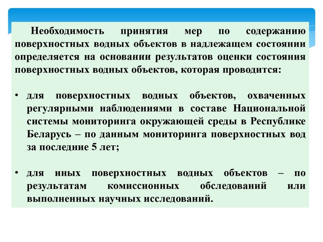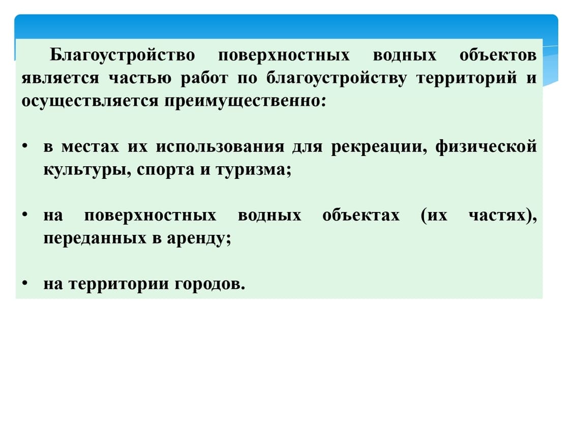 Требования к выполнению работ по содержанию поверхностных водных объектов в надлежащем состоянии и их благоустройству