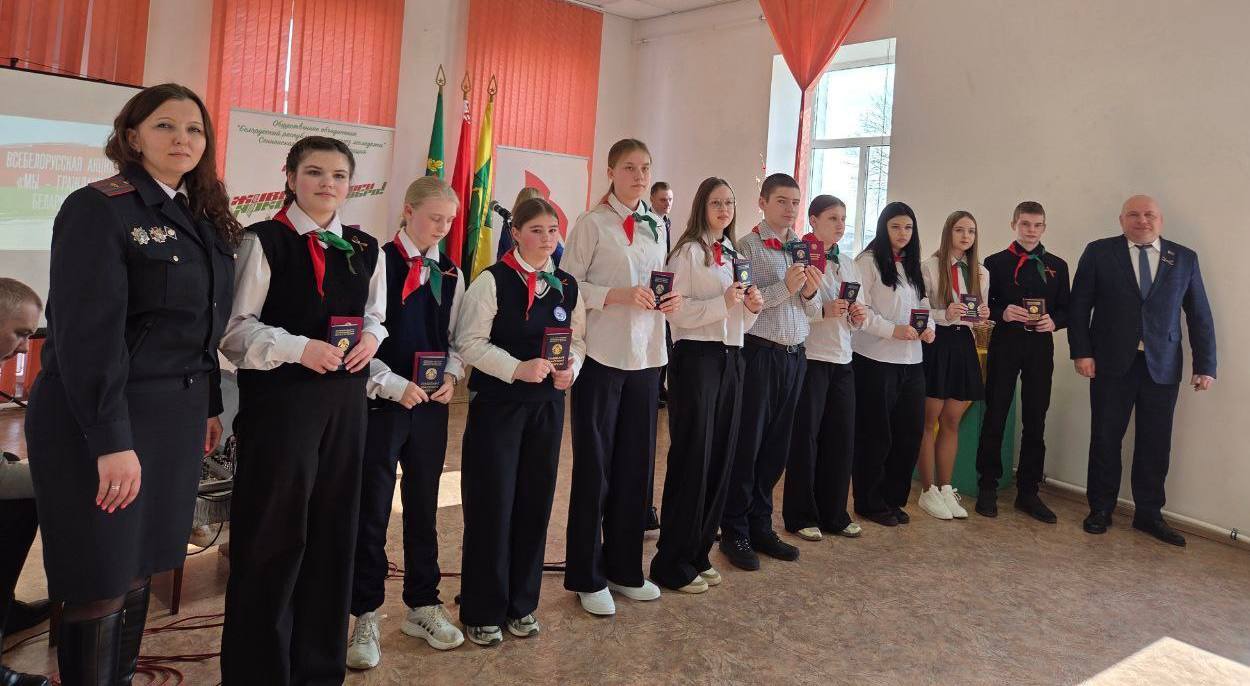 Юные жители района, прошедшие путь от октябрят и пионеров до БРСМ, получили паспорта и вступили в ряды «Белой Руси»