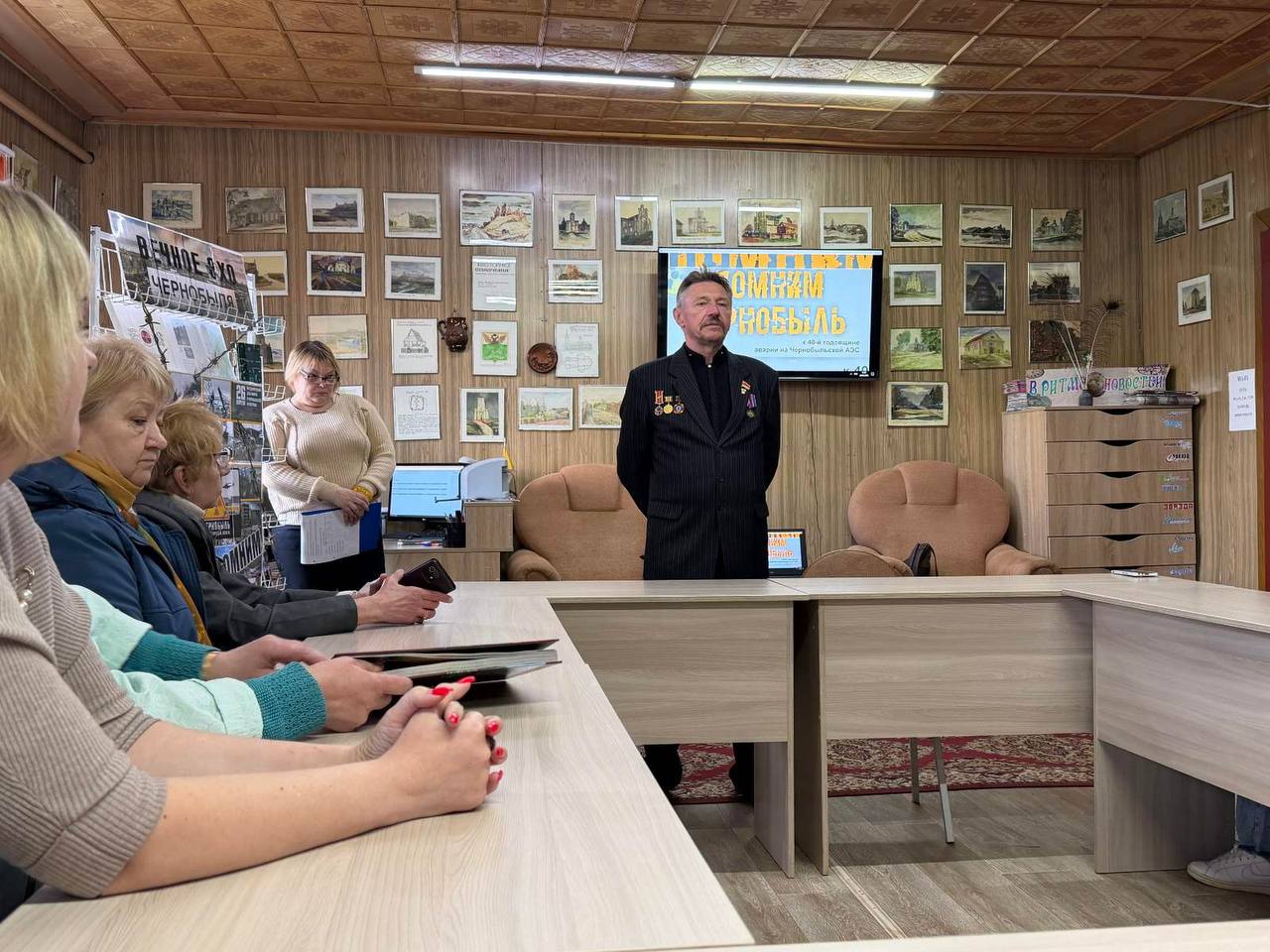 Он поделился воспоминаниями о тех суровых испытаниях, что выпали на долю героев-ликвидаторов. Познакомил собравшихся с книгой «Чернобыль. Хроника мужества».