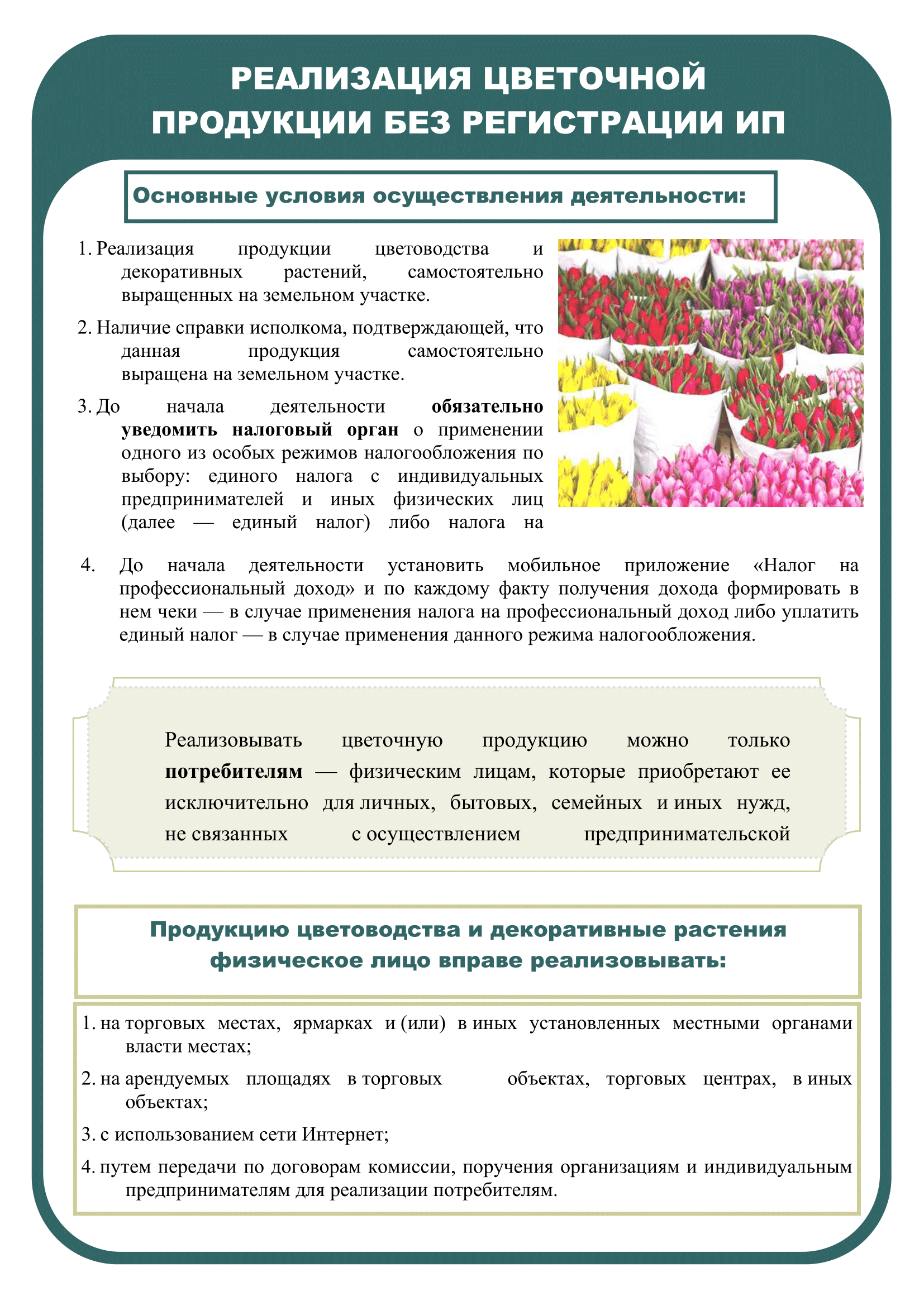 РЕАЛИЗАЦИЯ ЦВЕТОЧНОЙ ПРОДУКЦИИ БЕЗ РЕГИСТРАЦИИ ИП