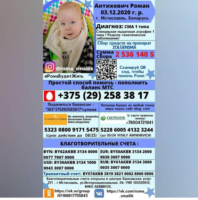 Сбор средств на препарат ZOLGENSMA