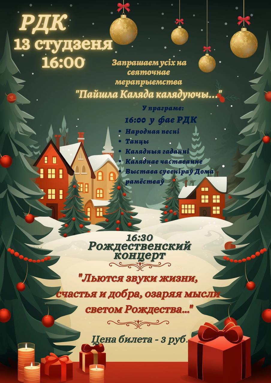 13 января в 16:00 приглашаем всех на праздничное мероприятие "Пайшла Каляда калядуючы..."