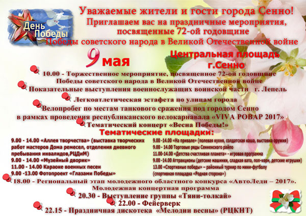 День Победы 2017 в Сенно. Программа мероприятий<br />