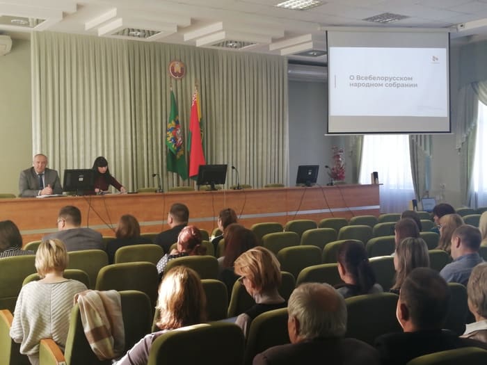Заместитель председателя Сенненского райисполкома А. В. Красаков, начальник отдела идеологической работы, культуры и по делам молодежи Сенненского районного исполнительного комитета, председатель Сенненской районной организации Республиканского общественного объединения "Белая Русь" А. Д. Мартынович провели диалоговую площадку по обсуждению законопроектов о ВНС, "Об изменении Избирательного кодекса Республики Беларусь" с трудовыми коллективами Сенненского района