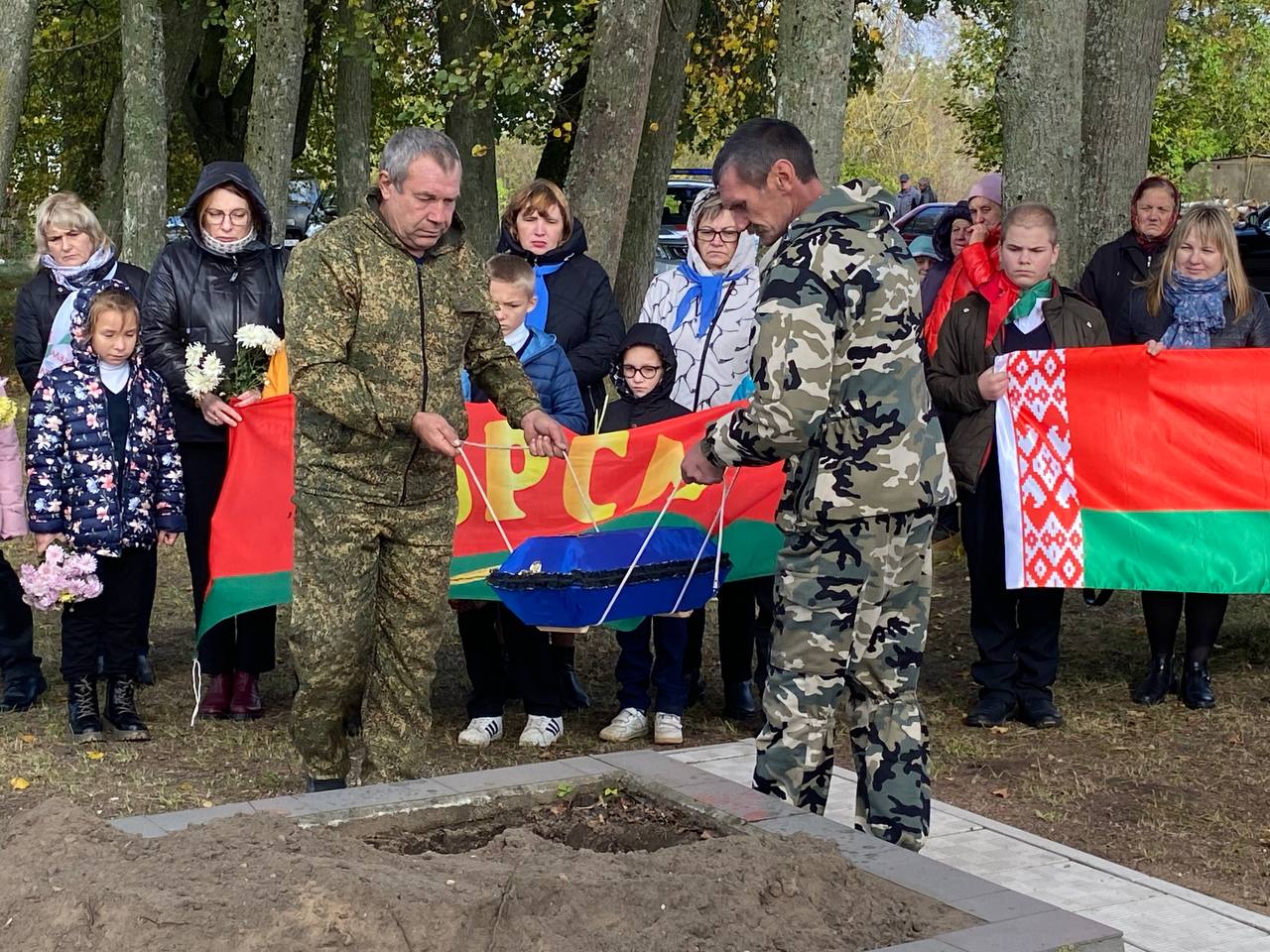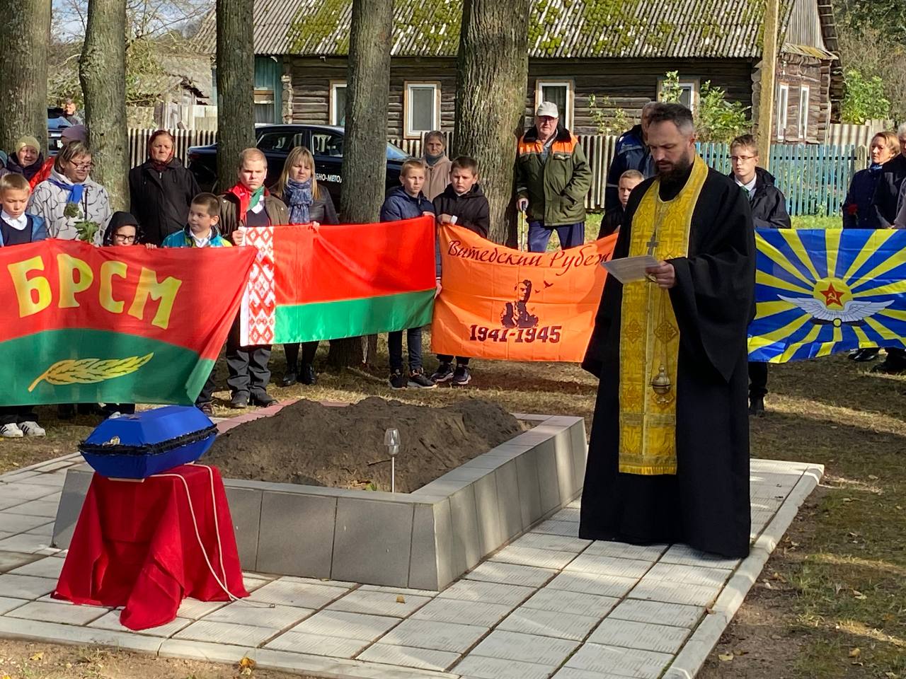 <div style="text-align: left; width: 100%">На воинском захоронении в деревне Старая Белица прошло перезахоронение останков одного из летчиков экипажа советской армии, погибшего в годы Великой Отечественной войны </div>
