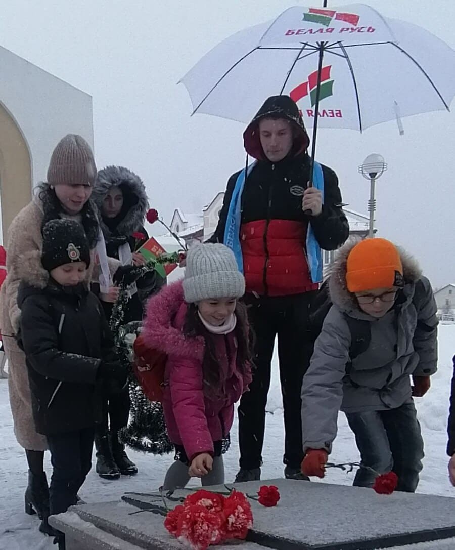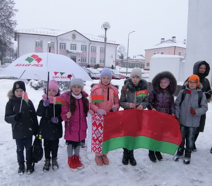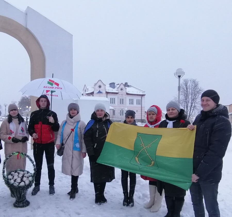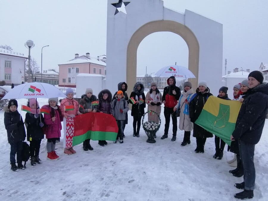 Патриотический флеш-моб "Против преступного беспамятства" с участием представителей районных общественных организаций Белая Русь, БСЖ, Белорусский фонд мира и учащихся школ района