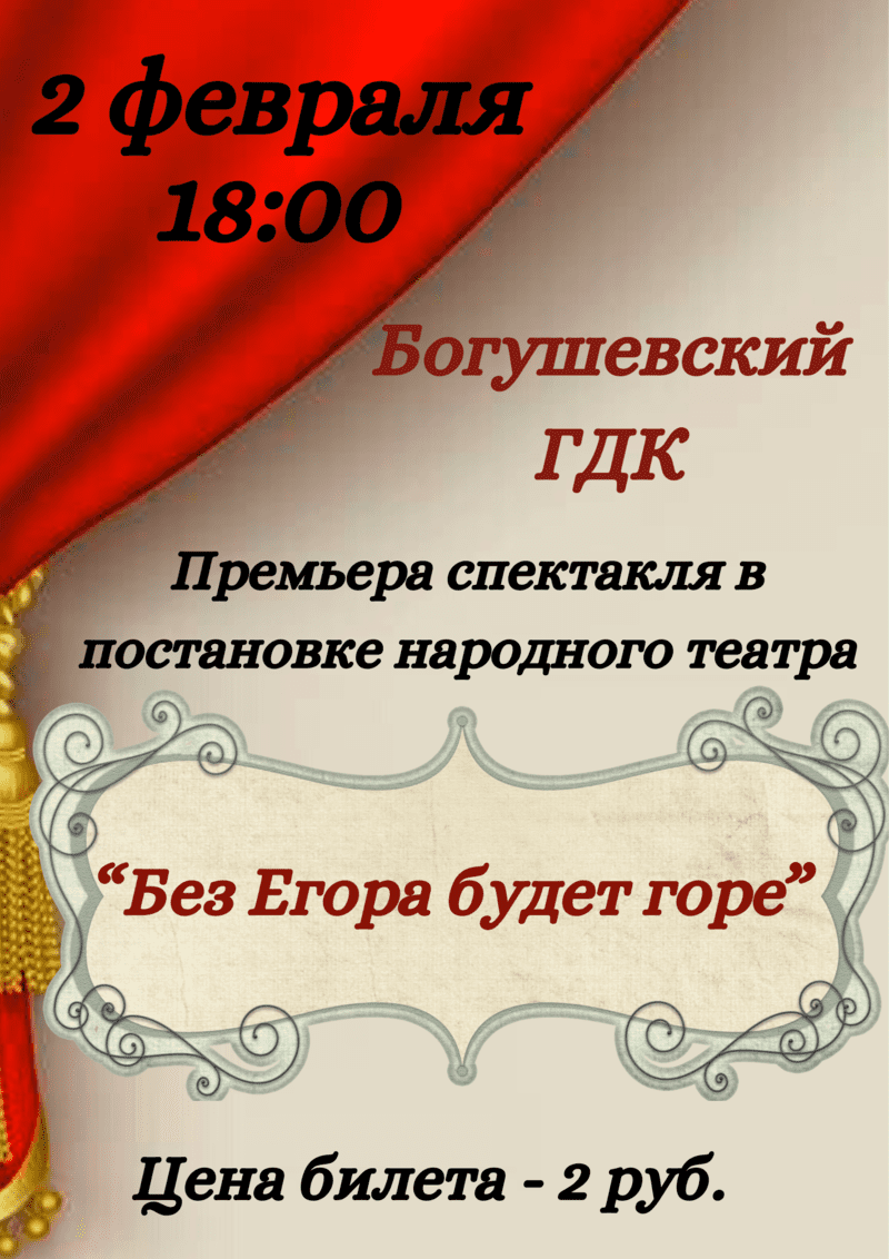 Премьера спектакля в постановке народного театра "Без Егора будет горе"