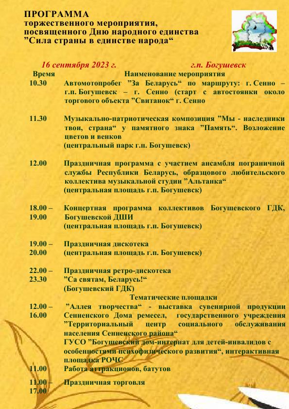 Программа празднования Дня народного единства