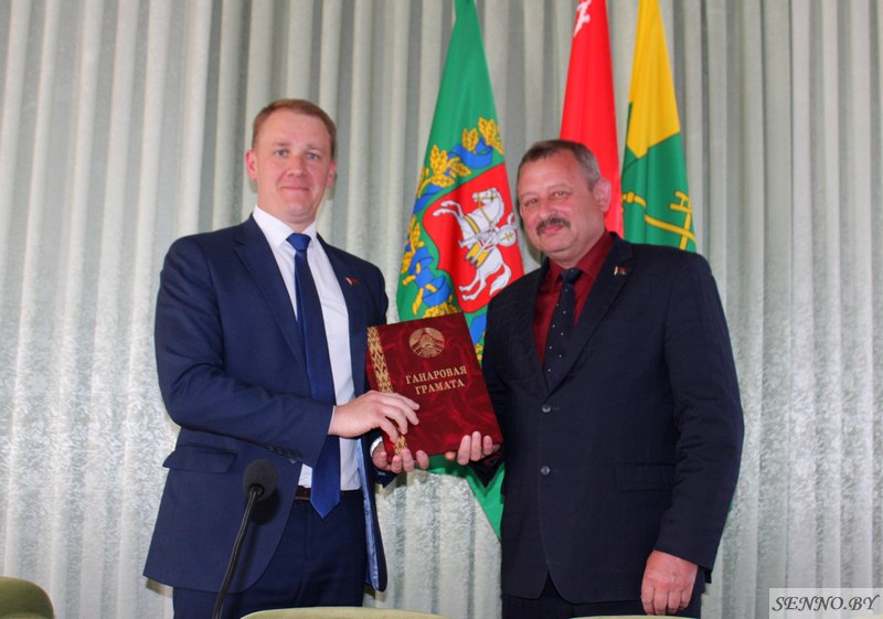 Михаил Вилюго, председатель районного Совета депутатов, вручил Игорю Морозу Почетную грамоту за добросовестный труд в системе местного управления, личный вклад в социально-экономическое развитие Сенненского района.