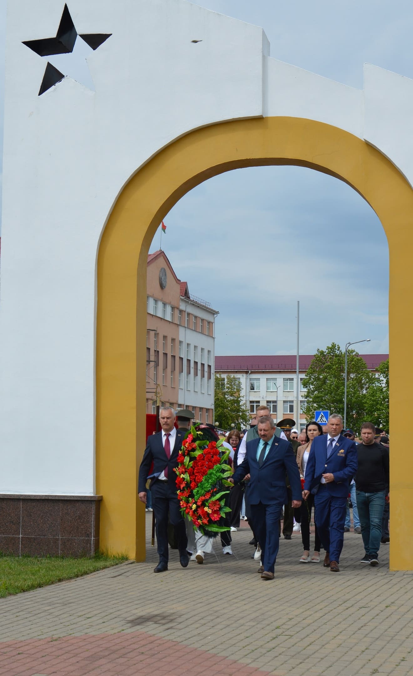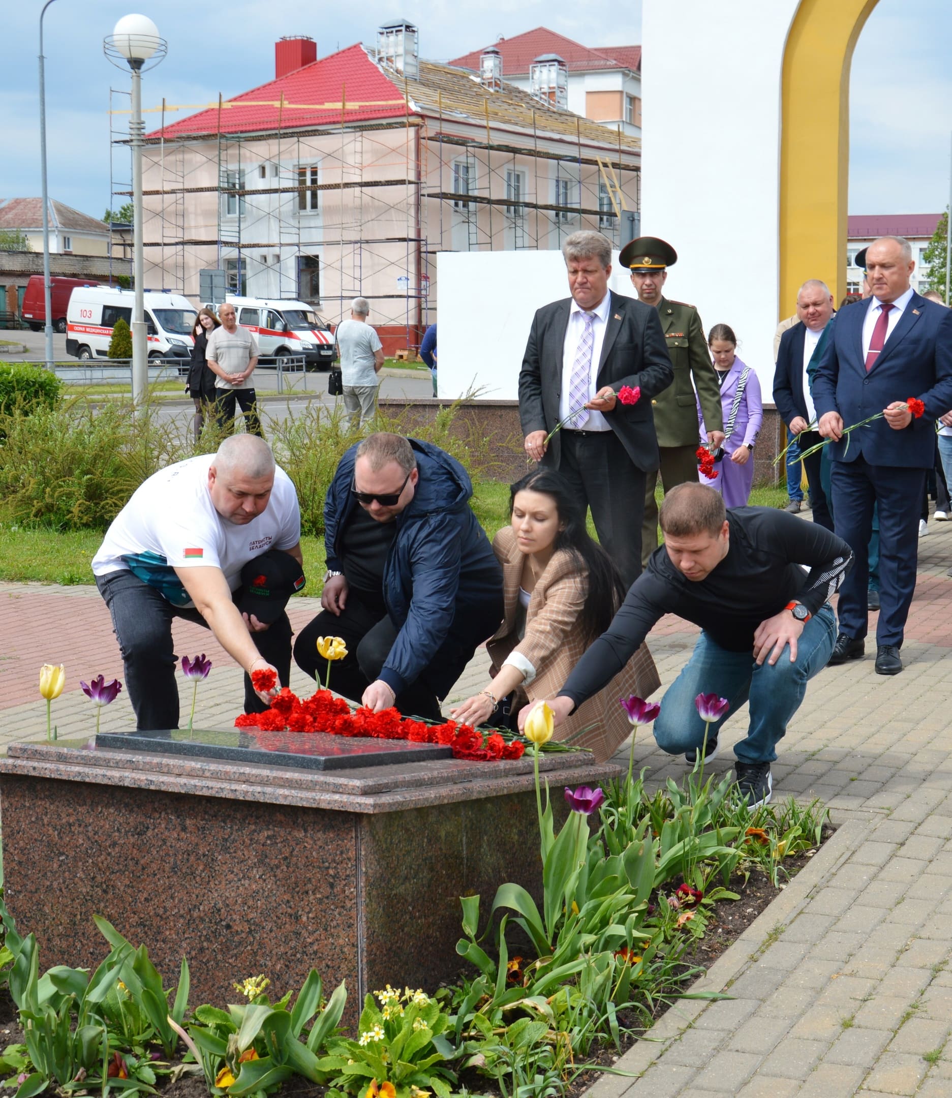 Колонна автопробега "Автомай" стартовала из Витебска! По прибытии в город Сенно участники склонили головы в скорбном молчании у братской могилы советских воинов и партизан, возложив к подножию алые гвоздики – символ вечной памяти и благодарности.