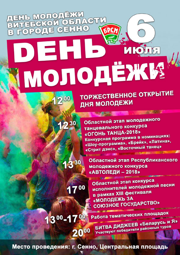 Сенно — молодёжная столица Витебщины. 6 июля в райцентре пройдёт областной праздник «День молодёжи»