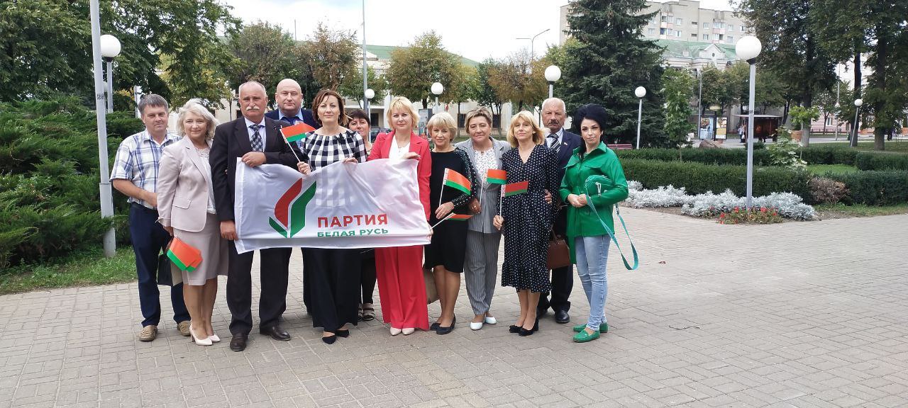 Церемония передачи флага Белорусской партии «Белая Русь» и вручение партийных билетов в Орше
