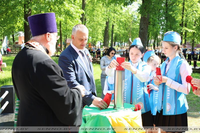 Протоиерея Витебской епархии Александра Мозылёва встречали хлебом-солью на границе с Сенненским районом. У братской могилы советских воинов в д.Заветное прошел забор земли с воинского захоронения, которая впоследствии была помещена в капсулу.