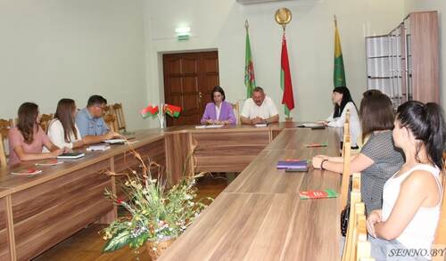 В малом зале райисполкома прошла встреча молодежного актива с участием Михаила Николаевича Вилюго, председателя районного Совета депутатов, Анны Дмитриевны Мартынович, начальника отдела идеологической работы, культуры и по делам молодежи райисполкома