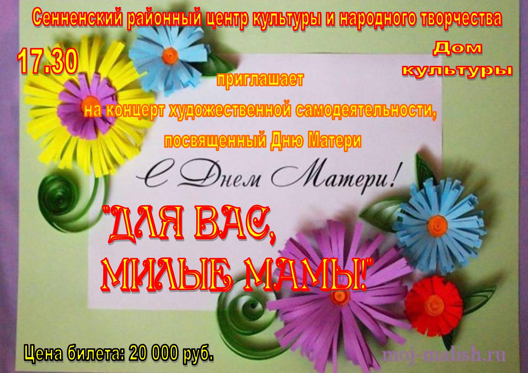 14 октября 2015 года в районном Доме культуры состоится праздничный концерт, посвящённый великому и светлому празднику – ДНЮ МАТЕРИ.