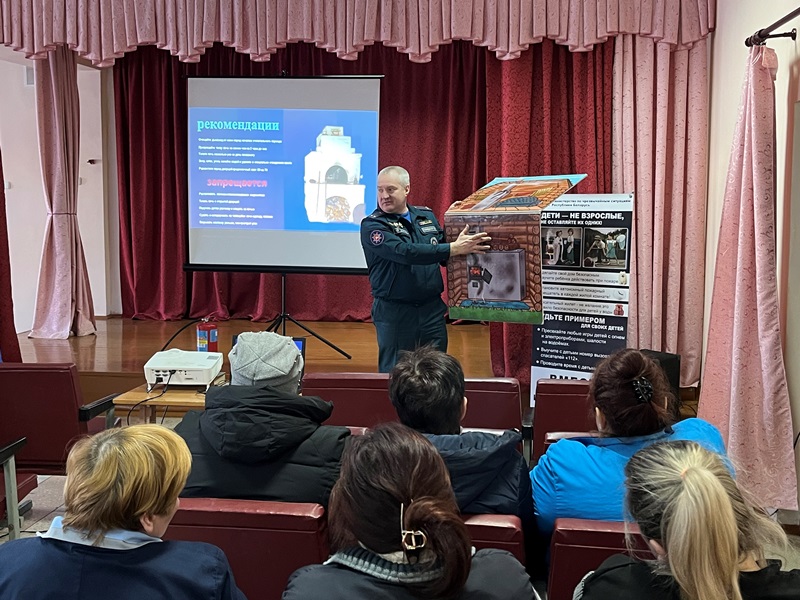 Начальнік аддзела азнаёміў усіх прысутных з сітуацыяй па пажарах і гібеллю на іх людзей, прывёў трагічныя выпадкі, якія адбыліся на тэрыторыі раёна і вобласці. Далей работнік МНС растлумачыў жыхарам населенага пункта патрабаванні правілаў пажарнай бяспекі пры эксплуатацыі пячнога ацяплення. Не абышлі бокам і праблему «п'янай цыгарэты» – менавіта курэнне ў ложку застаецца адной з галоўных прычын гібелі людзей на пажарах. Таксама былі агучаны патрабаванні пажарнай бяспекі пры спальванні смецця на прысядзібных участках і недапушчэнні выпальвання сухой расліннасці. Распавёў начальнік аддзела і аб адміністрацыйнай адказнасці за выпальванне сухой расліннасці. Асаблівую ўвагу акцэнтаваў прадстаўнік МНС на абсталяванне жылых пакояў аўтаномнымі пажарнымі апавяшчальнікамі, бо дадзенае прылада загадзя апавясціць аб пажары, абудзіць ноччу і ўратуе жыццё. Распавёў Сяргей Васільевіч і пра тэхнічнае абслугоўванне апавяшчальніка і аптымальнае месца для ўстаноўкі ў жылых пакоях.